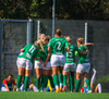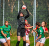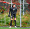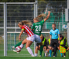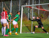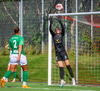 Valgerður með hörkuskot lengst utan af velli sem neglist í slánna og niður beint til Öglu sem er ein á móti írisi en íris með heimsklassa vörslu vá!