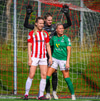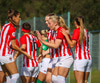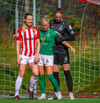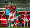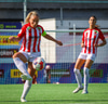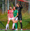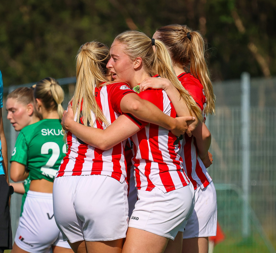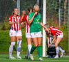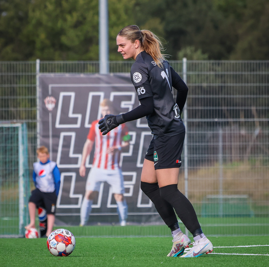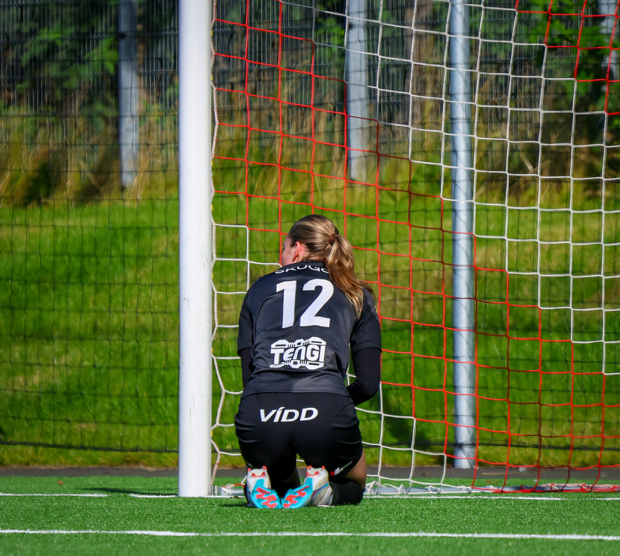 Tanya með sendingu fyrir sem Toni nær að koma frá en ekki nógu langt beint á Sæunni sem á skot í Toni og inn, gæti verið skráð síðan sem sjálfsmark á Toni.