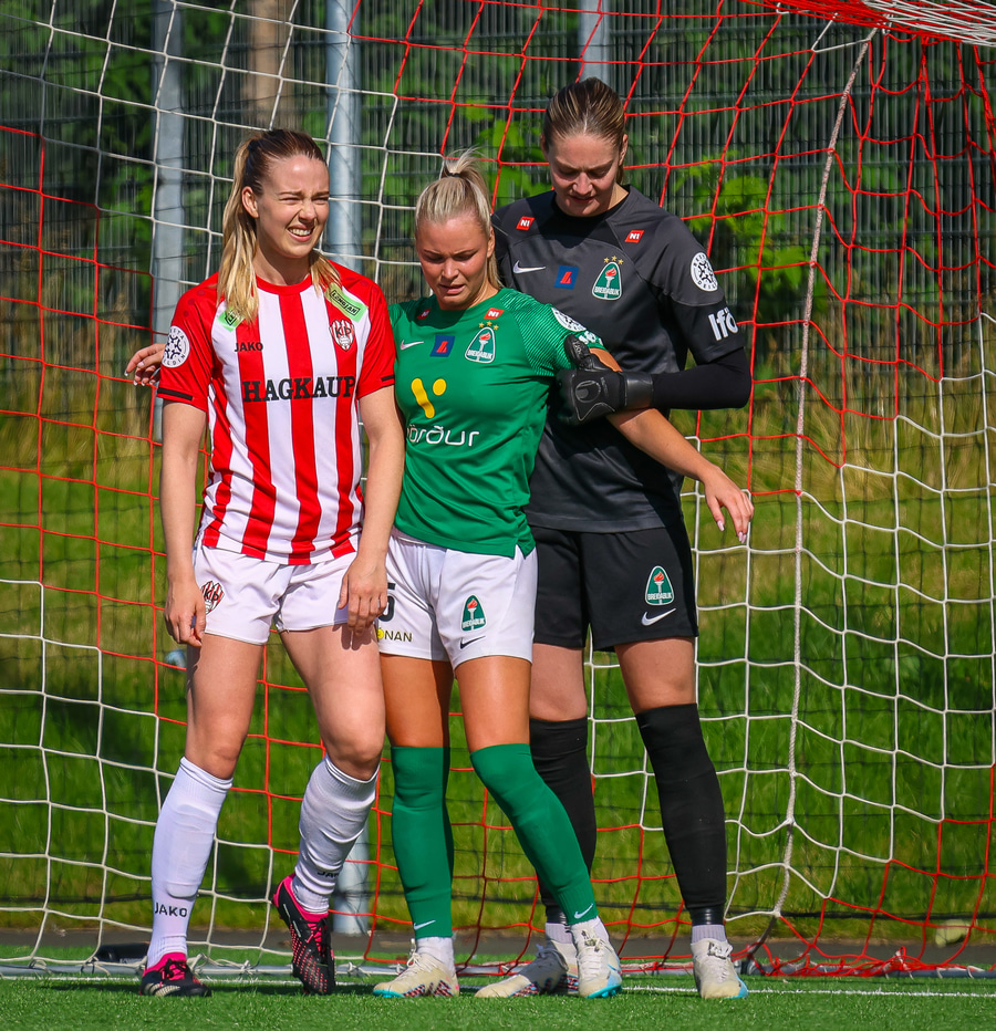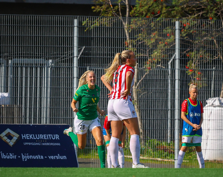 Blikar með afar fallegt spil sem endar með skoti Taylor í varnarmann og boltinn hrekkur til Hafrúnar sem skorar en er dæmd rangstæð