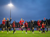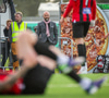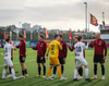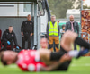 Nú þegar það er loksins orðið ljóst að leikurinn fari fram er hægt að fara að einbeita sér að því sem er framundan. Víkingar eru farnir inn í klefa í sínum lokaundirbúningi fyrir leikinn. Blikat virðast hinsvegar ætla að taka bara spjallið úti á vellinum.