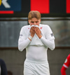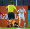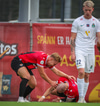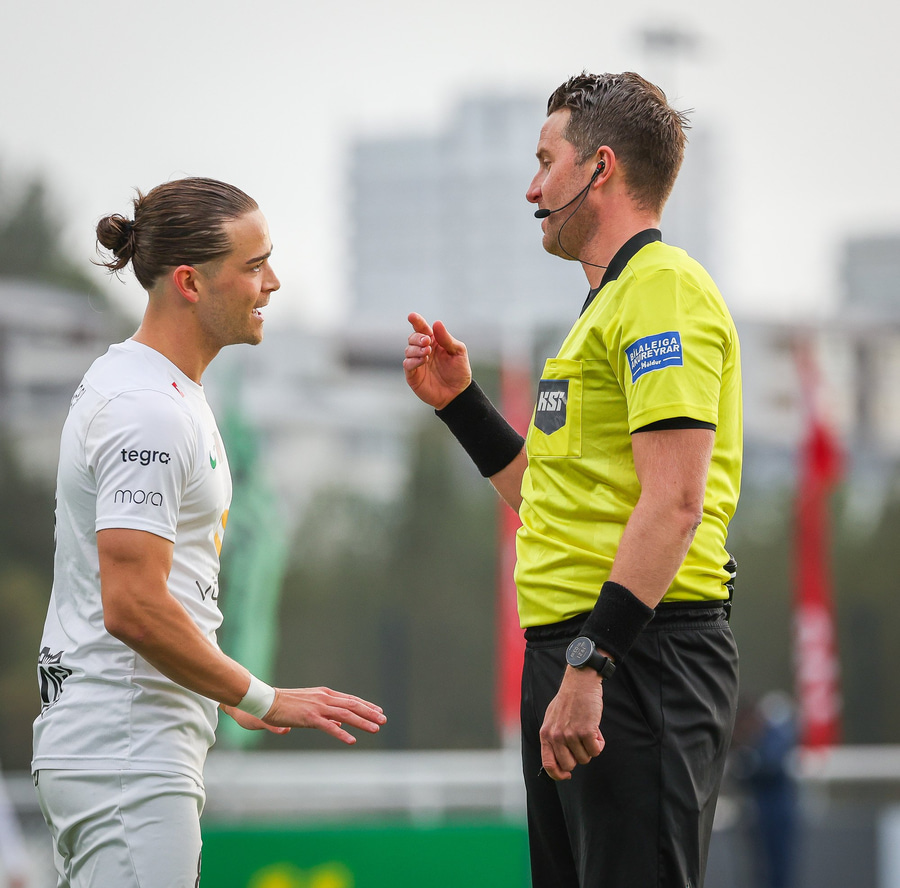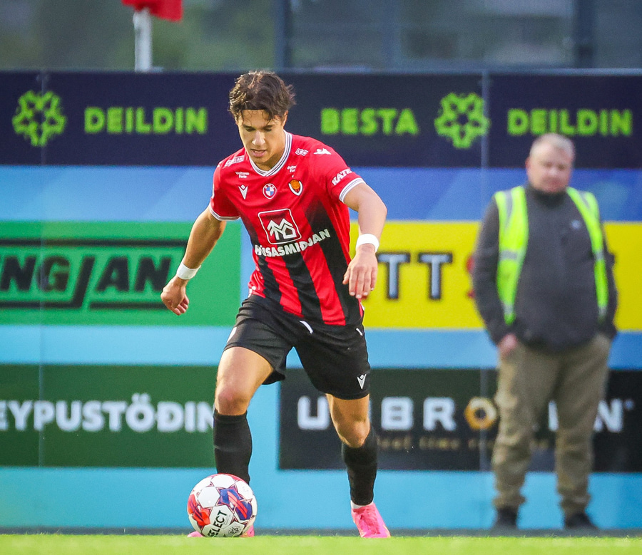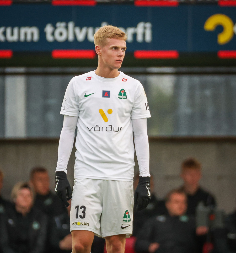 90+3 Brýtur á Karli Friðleifi og er á leið í bann eftir þetta spjald. Liggur sjálfur eftir og þarf aðhlynningu