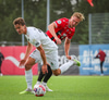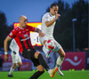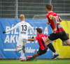 Víkingar í ákjósanlegri stöðu . Daniel Djuric að sleppa í gegn en Anton Logi gerir vel að hægja á honum áður en Brynjar Atli varði