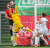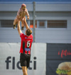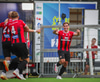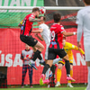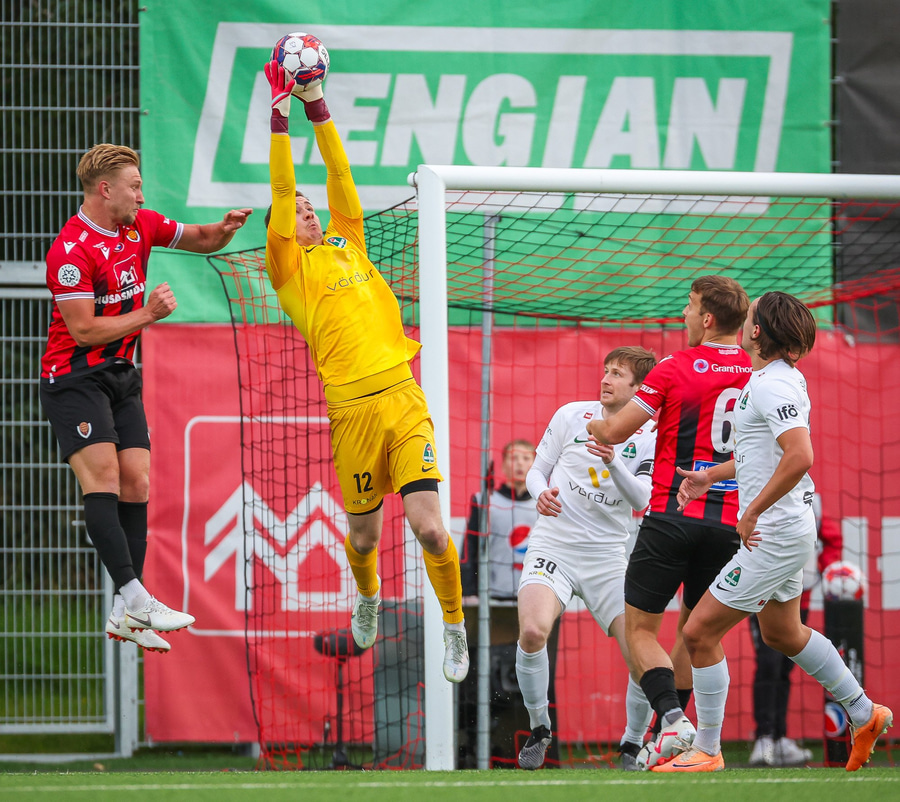 Pablo tekur aukaspyrnu sem Gunnar Vatnhamar skallar í átt að marki en Brynjar ver glæsilega.