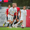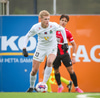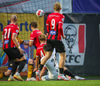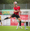 Nikolaj Hansen með skalla eftir fyrirgjöf frá Davíð Erni. Skallinn hinsvegar laus og fer framhjá.