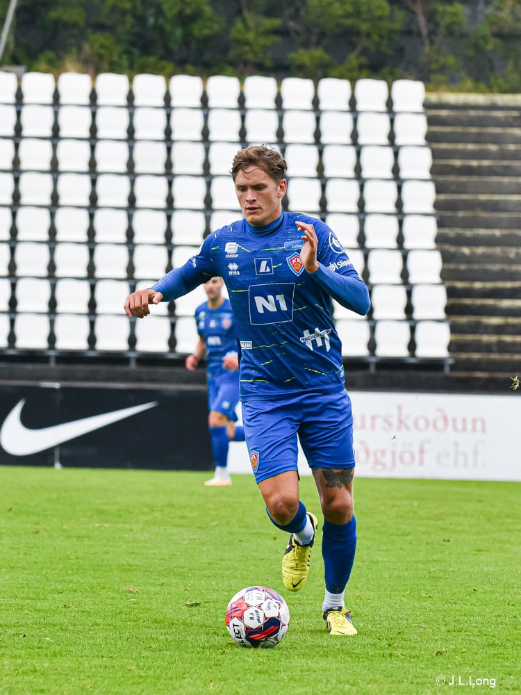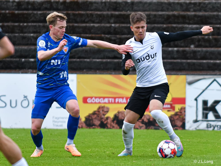 Ásgeir Sigurgeirsson fær boltann út til vinstri og reynir að finna Harley Willard á fjær ern boltinn útaf.