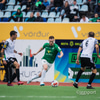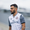 Reynir fyrirgjöf vinstra megin, á sendingu í varnarmann og fær hann aftur, keyrir inn á teig og á skot í fjærhornið sem Kjosevski ver inn