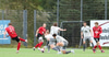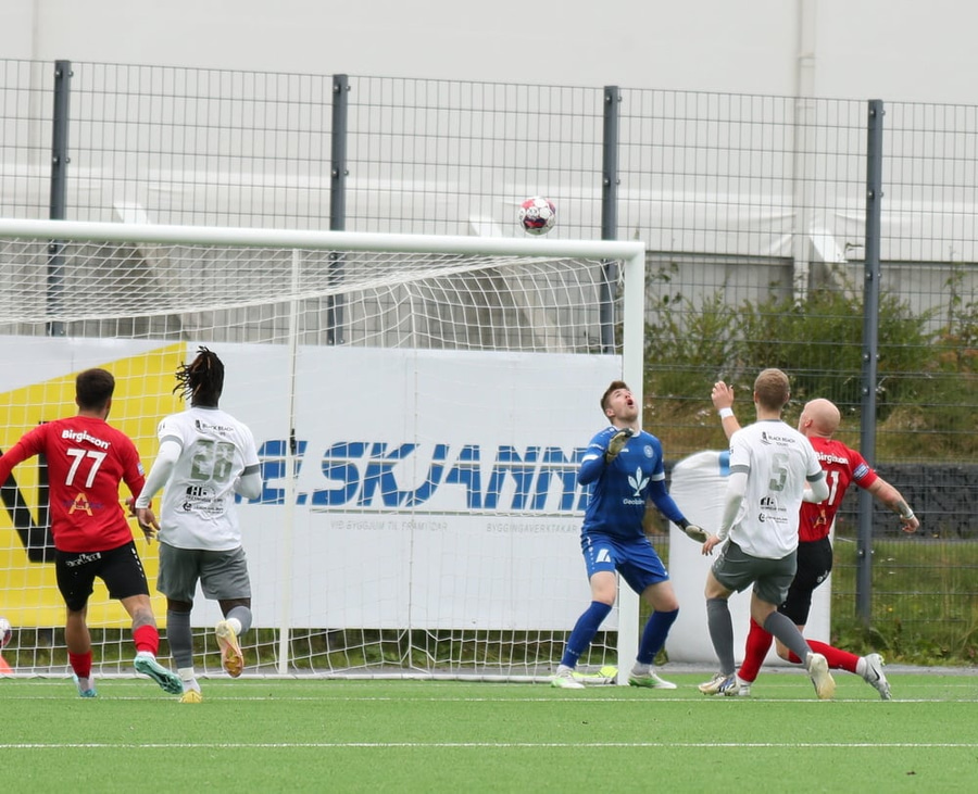 Afturelding með fyrirgjöf frá hægri og Anton Breki skorar næstum sjálfsmark þegar hann hreinsar boltann!