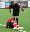 Anton fer harkalega í Hrafn og fær réttilega gula spjaldið.