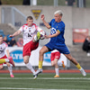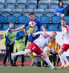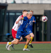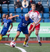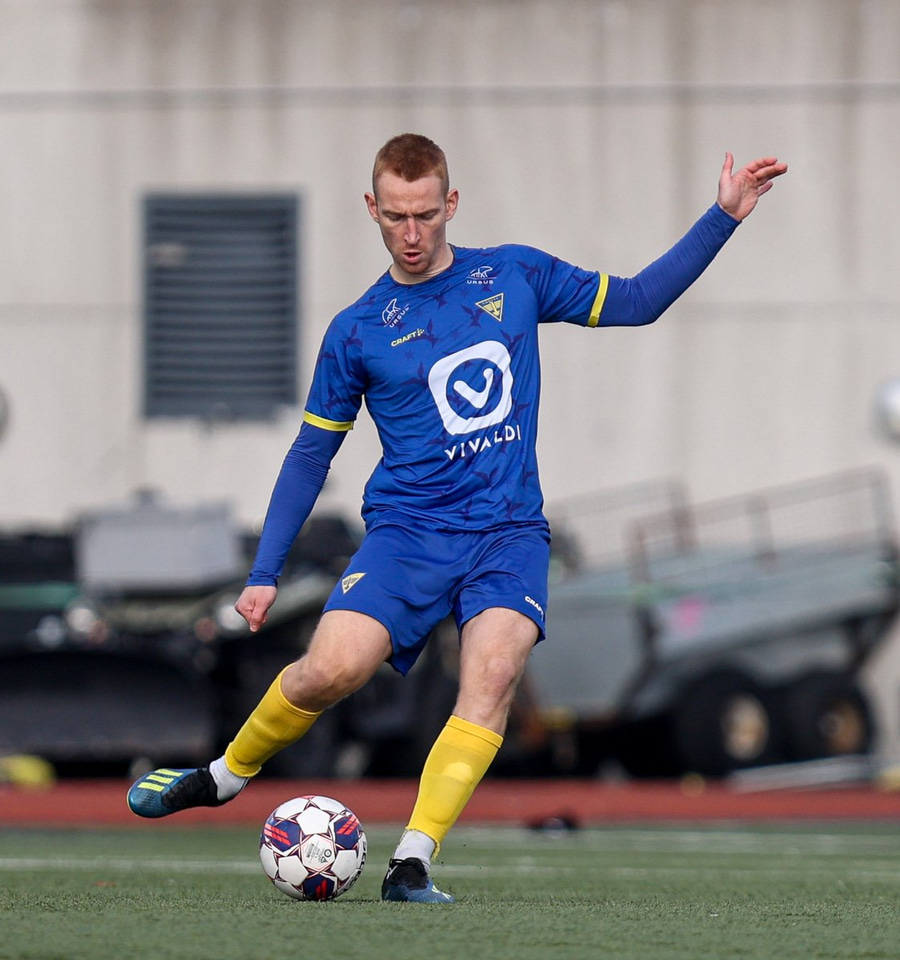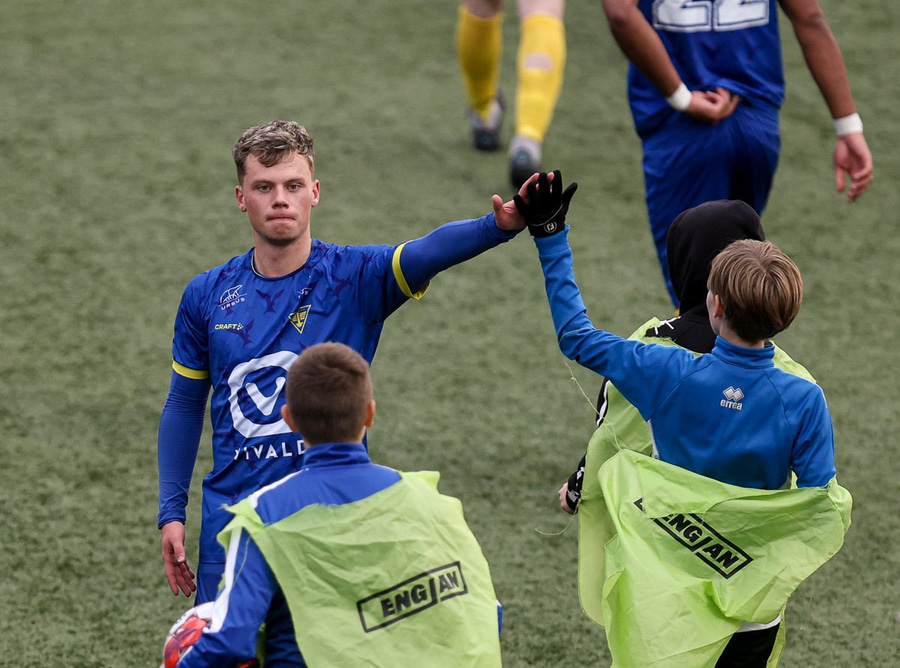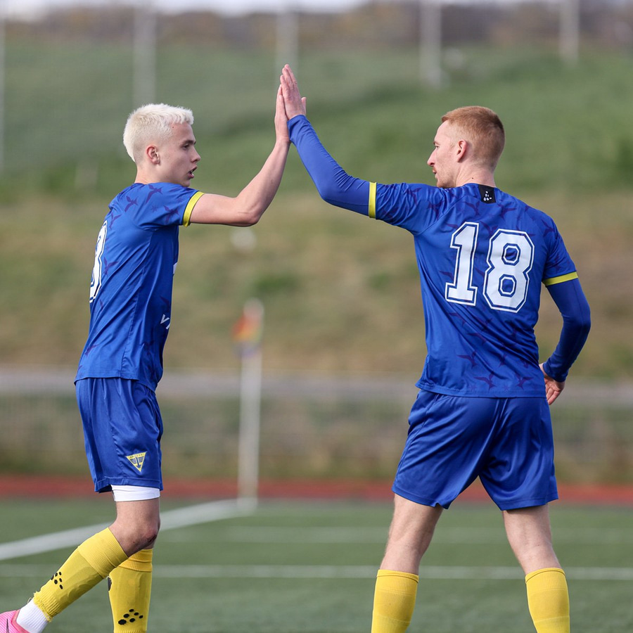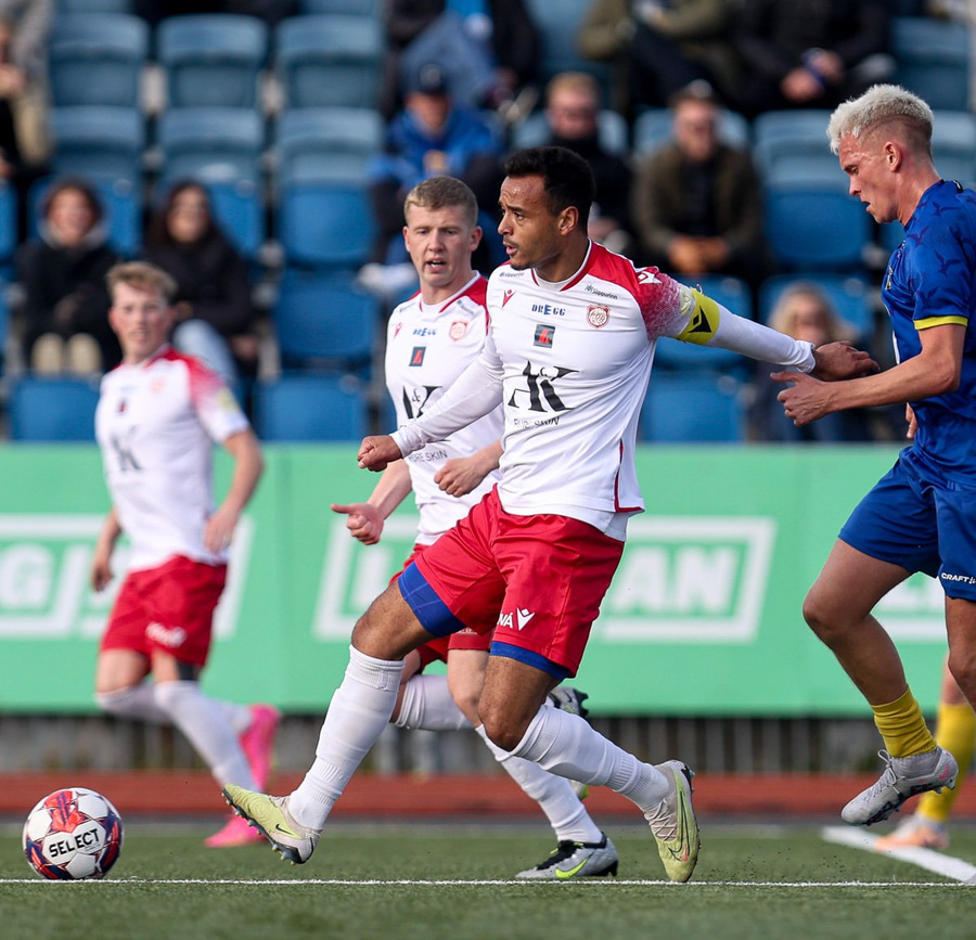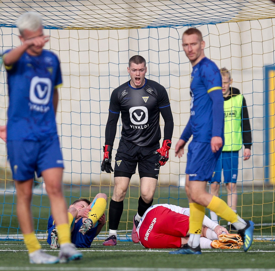 Kristófer Orri með geggjaða sendingu inn fyrir á Tómas Johannessen sem er aleinn gegn Aroni Birki en Aroni les Tómas eins og opna bók.