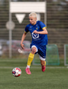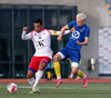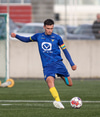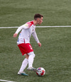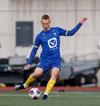 Birgir Ómar fær boltann og tekur hann með sér og á fyrirgjöf sem fer beint á Rafal í marki Gróttu.