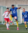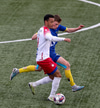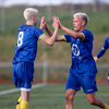 Ýmir tekur spyrnuna en Gróttumenn koma boltanum í burtu.