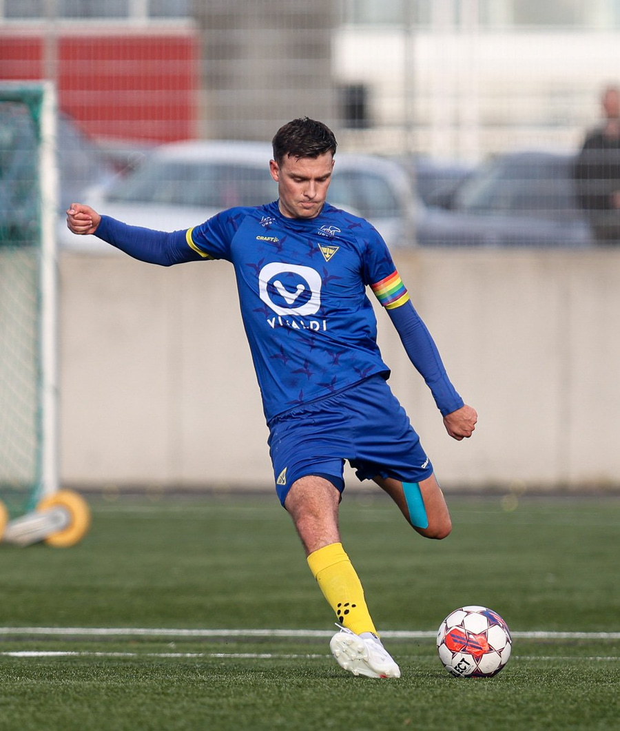 Fannar Daði fær boltann inn á teignum og rennir boltanum út á Sörensen sem nær góðu skoti en boltinn af Kristófer Melsted og í hornspyrnu.