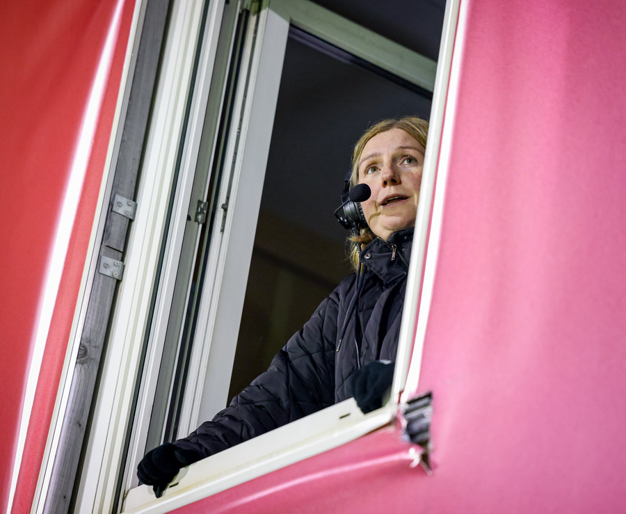 Það rísa allir á fætur í stúkunni og klappa fyrir þessari stórkostlegri frammistöðu Katrínar. Geggjuð í dag!