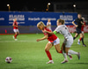 Agla tekur spyrnuna en ekkert kemur úr henni. Hún var slök og dreif ekki yfir fyrsta varnarmann.