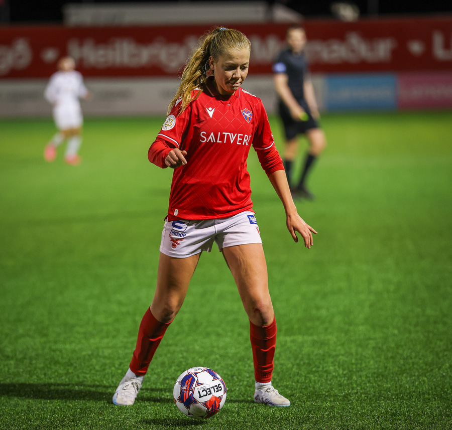 Tvær Blikakonur komnar einar í gegn á móti Fanneyju. Neinei þa sprettir hún upp völlinn og bara tekur boltann af Vigdísi Lilju og kemur honum aftur í spil. Þetta var helvíti nett, viðurkenni það.