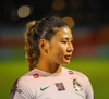 Linli Tu fær boltann inn á teig Vals og ætlar að taka skotið en Anna Björk kemst fyrir skotið og þetta fer í horn.