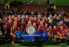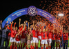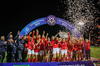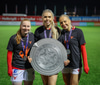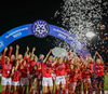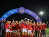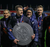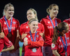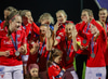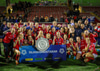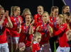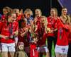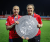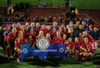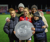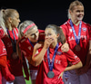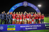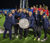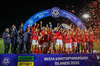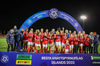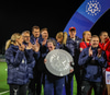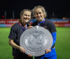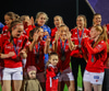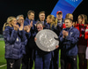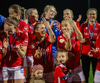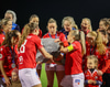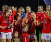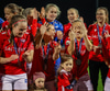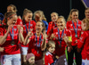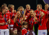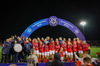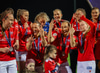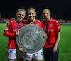 Breiðablik stendur hér heiðursvörð fyrir Íslandsmeistarana. Bæði karla og kvenna lið Breiðabliks núna búin að standa heiðursvörp á skömmum tíma.