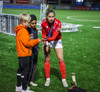 Vanda er mætt til að veita viðurkenningar fyrir leik. Besti dómarinn og leikmaður sem leikmenn kusu.
