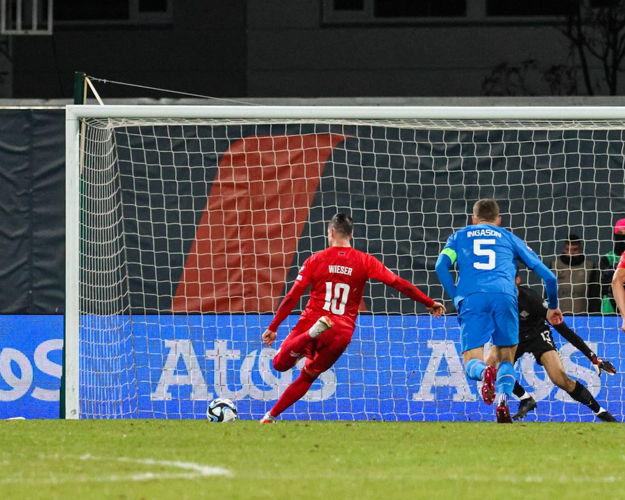 Arnór Ingvi finnur Jón Dag sem stingur Hákoni Arnari í gegn í fyrsta og hann lyftir boltanum skemmtilega yfir Benjamin Buchel í marki Liechtenstein.