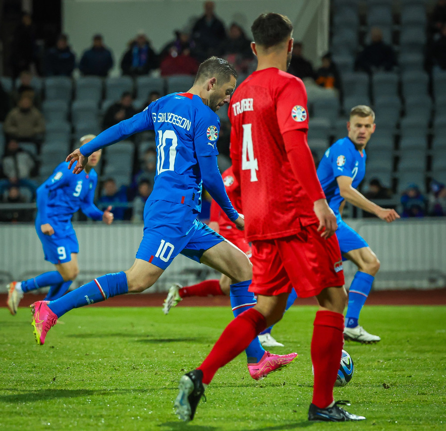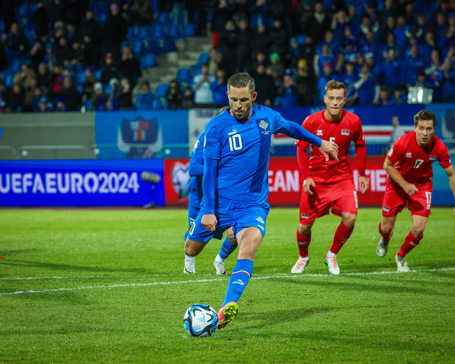 Þú sérð það bara i augunum á Gylfa að það er bara eitt sem hann sættir sig við - og það er markametið. Mentality sem þú kennir ekki. Hann mun alltaf skora annað i þessum leik.