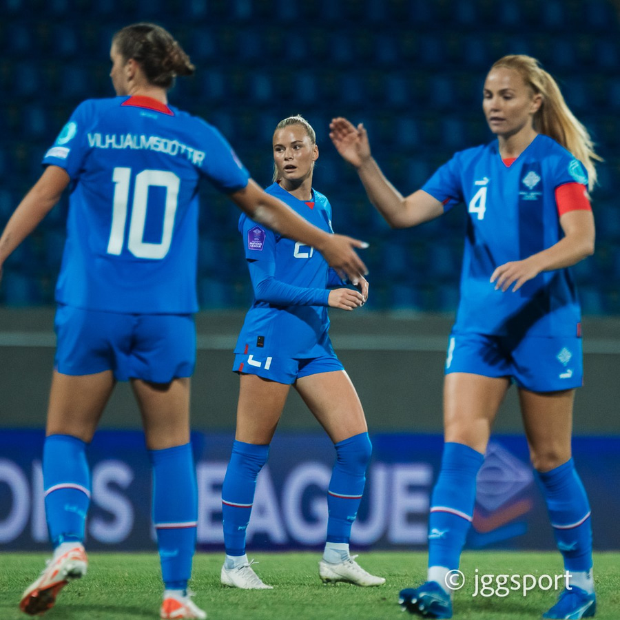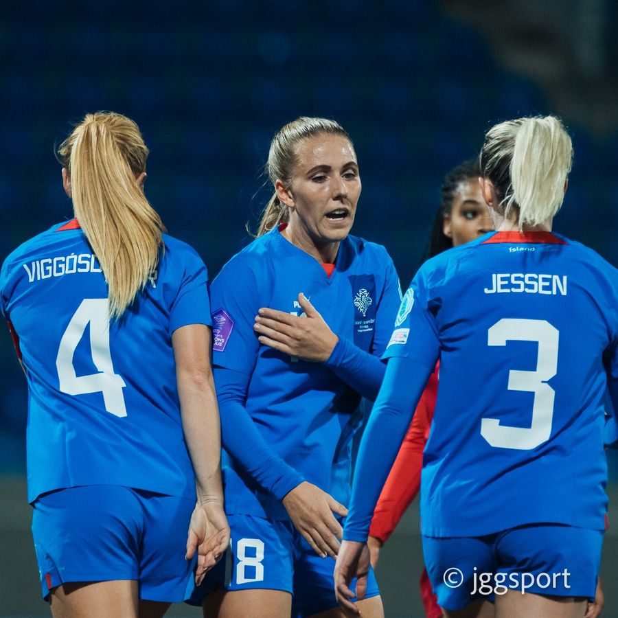 Allir leikmenn íslenska landsliðsins eru klárar í slaginn fyrir leikinn gegn Danmörku í Þjóðadeildinni annað kvöld. Nema Ingibjörg Sigurðardóttir sem er í leikbanni.