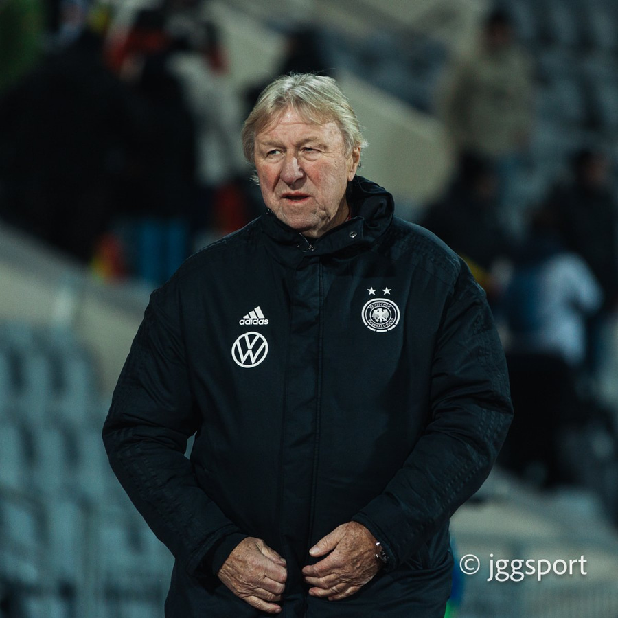 Horst Hrubesch er mættur hingað til lands með liðið sitt, þýska kvennalandsliðið. Hann tók nýverið við liðinu til bráðabirgða af Martina Voss-Tecklenburg sem er í veikindaleyfi. Markmið hans og liðsins eru nokkuð skýr.