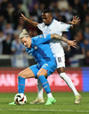 Arnór Sig keyrir inn völlinn og kemst óáreittur alla leið að D-boganum þar sem hann lætur vaða á markið. Glazer í marki Ísrael gerir vel að verja en boltinn beint fyrir fætur Orra sem setur boltann hárfínt framhjá.