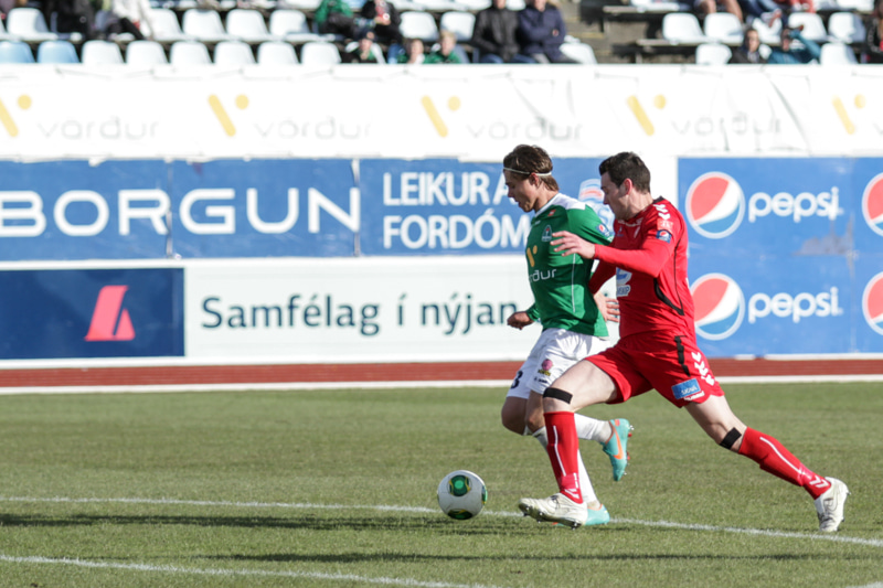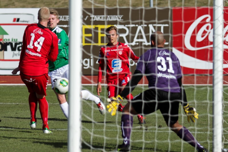 Elfar Árni á skot úr teignum en boltinn fer yfir. Húsvíkingurinn sprækur í byrjun leiks.
