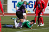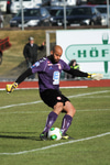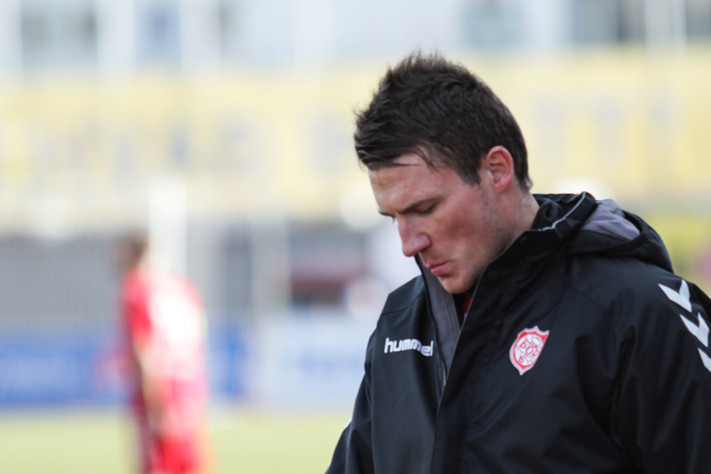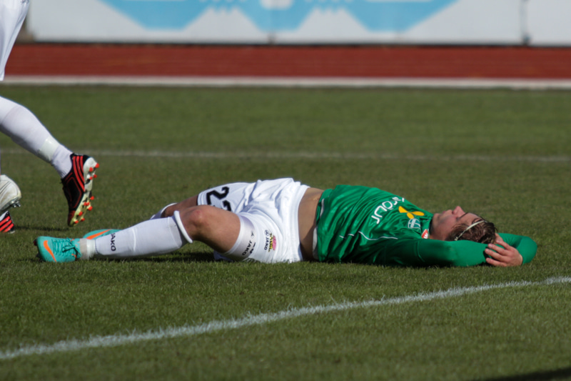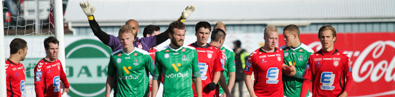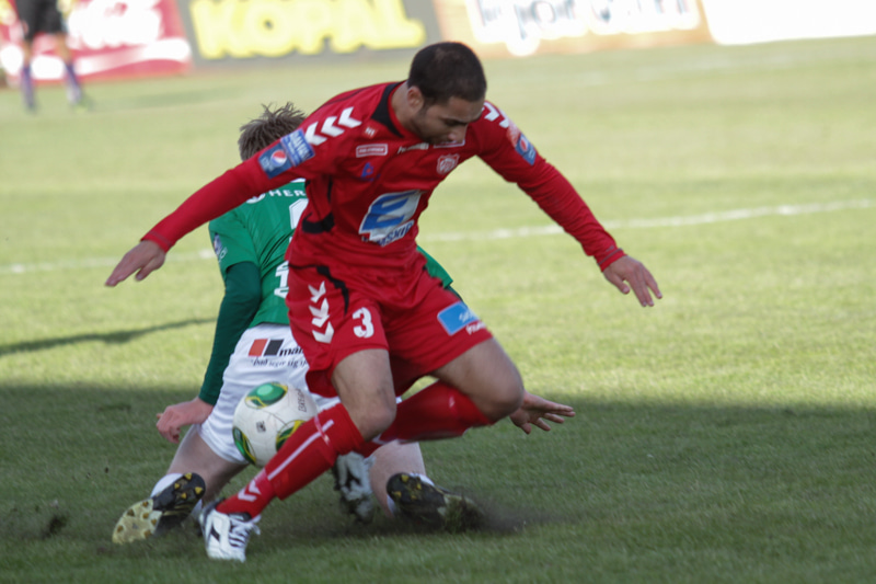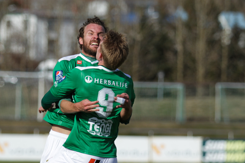 Jóhann Helgi lagar stöðuna á lokasekúndunum. Jóhann er einn og óvaldaður og skallar í slána og inn eftir hornspyrnu Mark Tubæk.