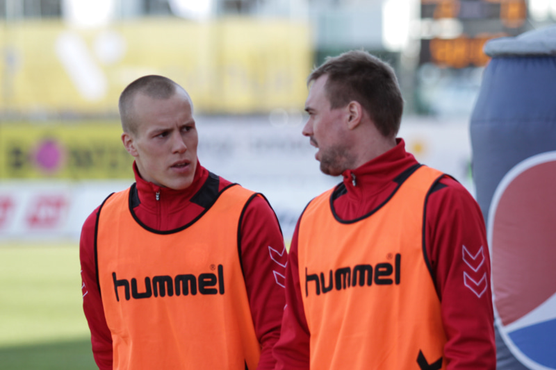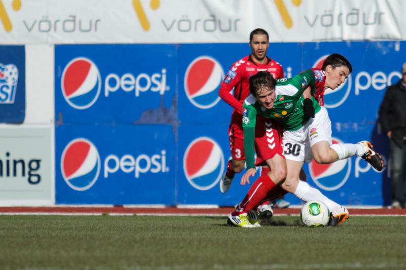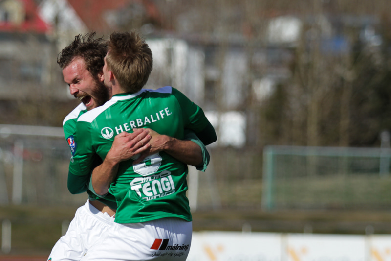 Mark Tubæk er hægra megin hjá Þór og Sveinn Elías Jónsson fyrirliði er á vinstri kantinum.