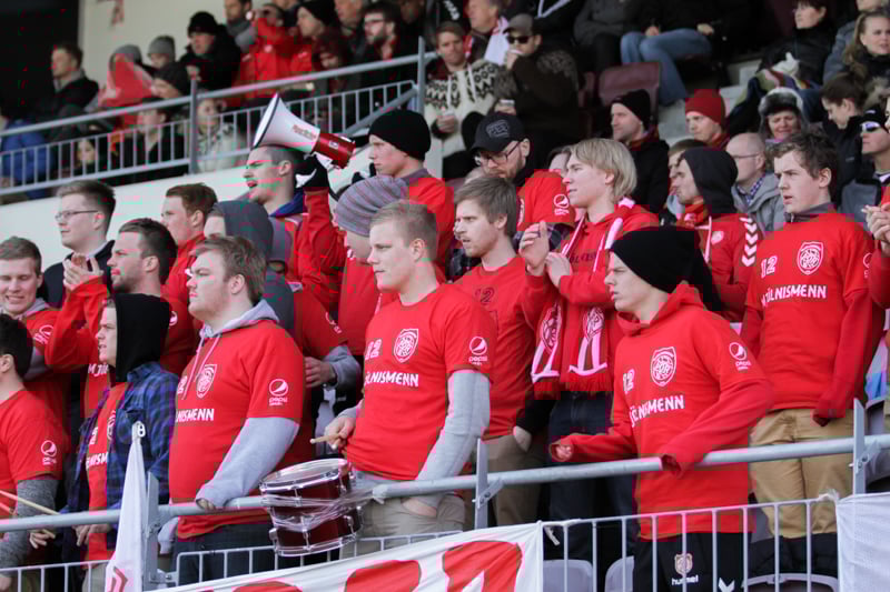 Mjölnismenn láta ekki sitt eftir liggja og fylgja sínu liði frá Akureyri. Til að mynda eru 72 Mjölnismenn að hita upp fyrir leikinn á Spot í þessum skrifuðu orðum.