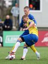 Grímur Freyr einn gegn Aroni eftir snarpa sókn Gróttu.