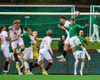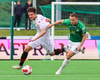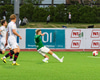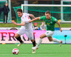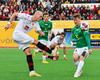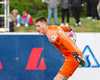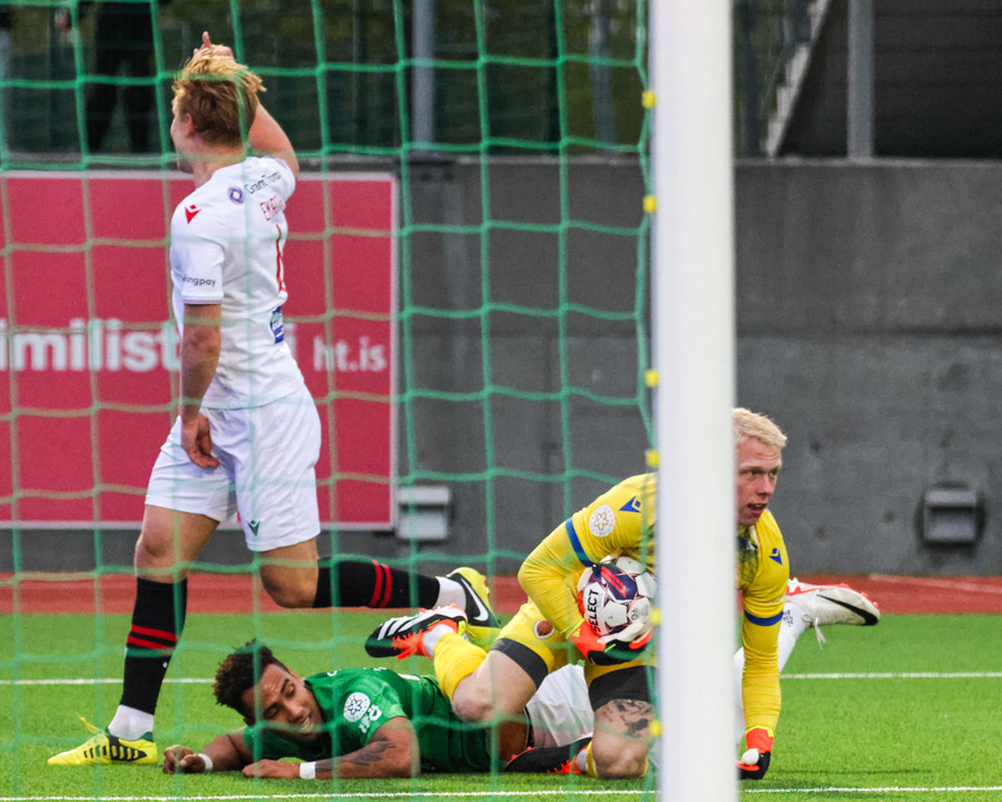 Viktor Karl með flotta pressu og fær hreinsun í bakið og boltinn fer í hliðarnetið.
