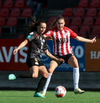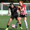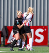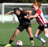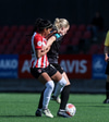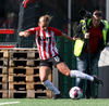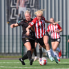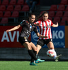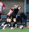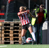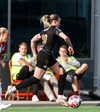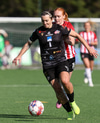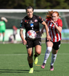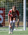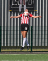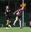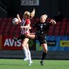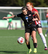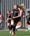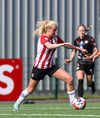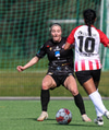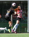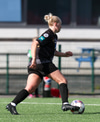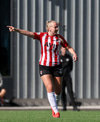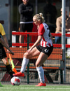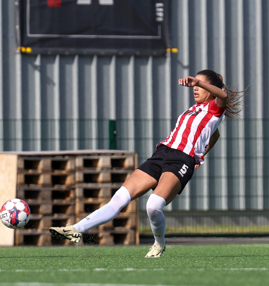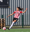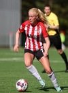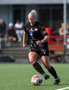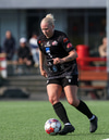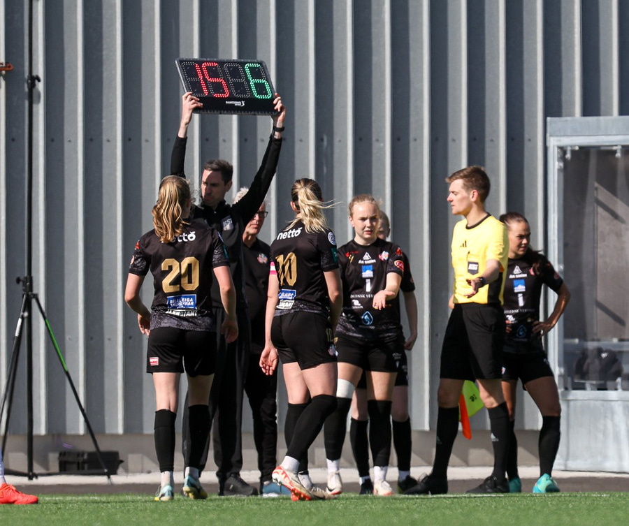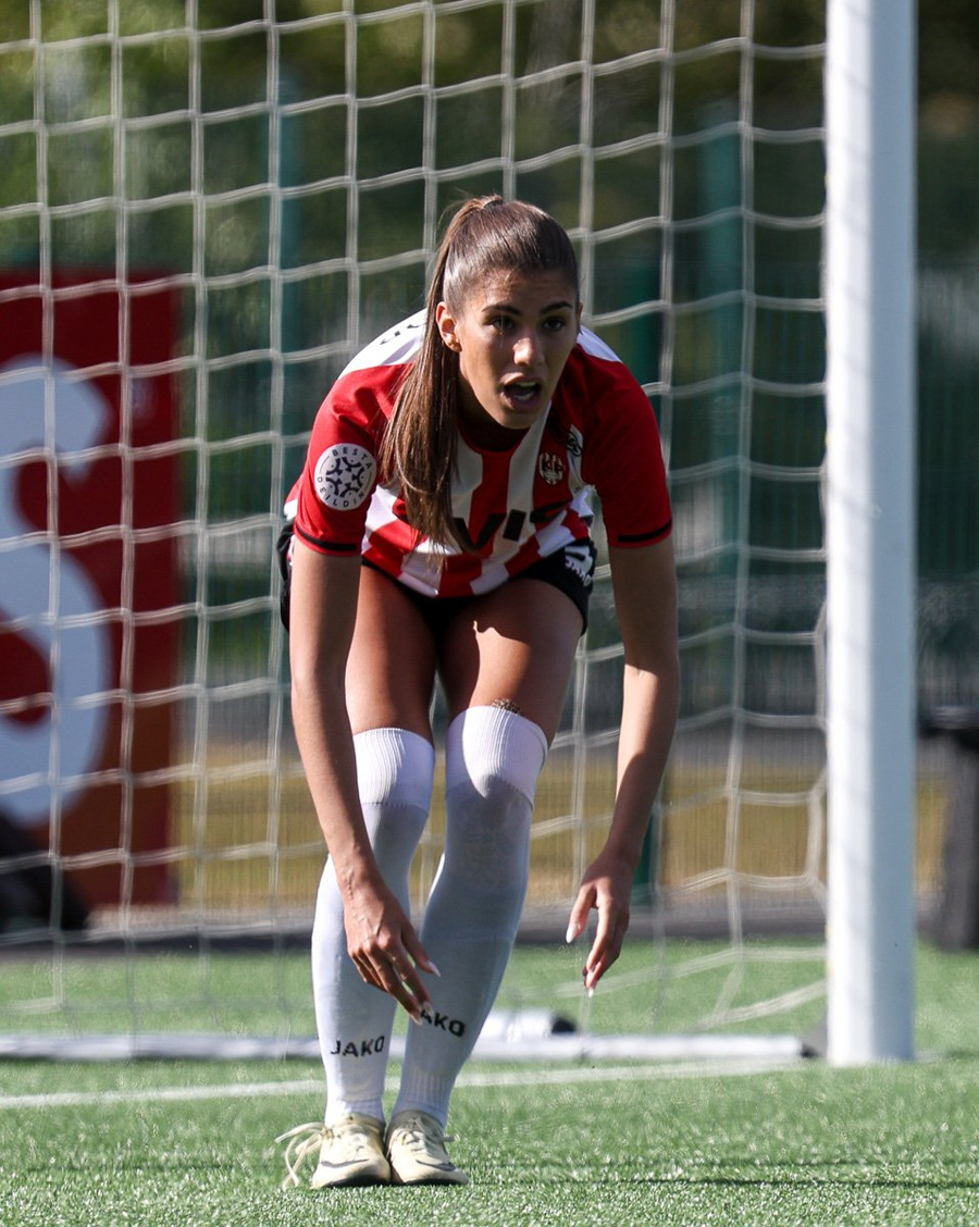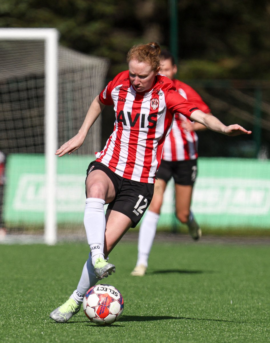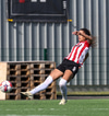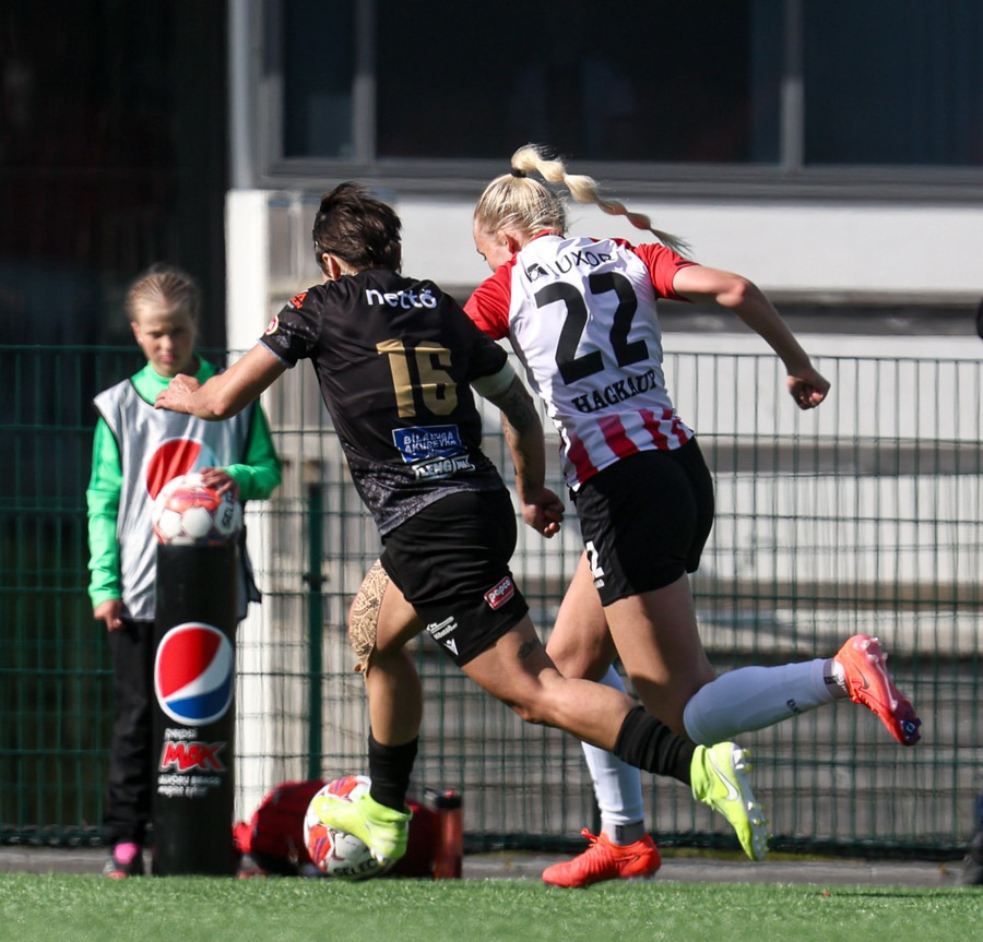 Lara Ivanusa í fínu færi í teignum eftir langa sendingu en náði ekki valdi á boltanum svo það rann út í sandinn.