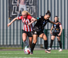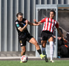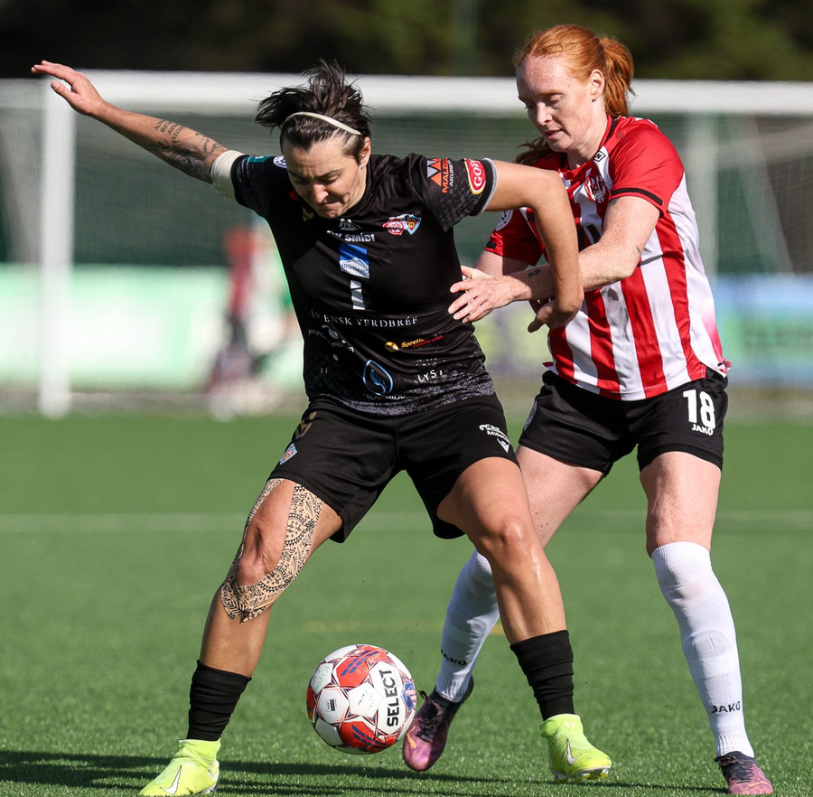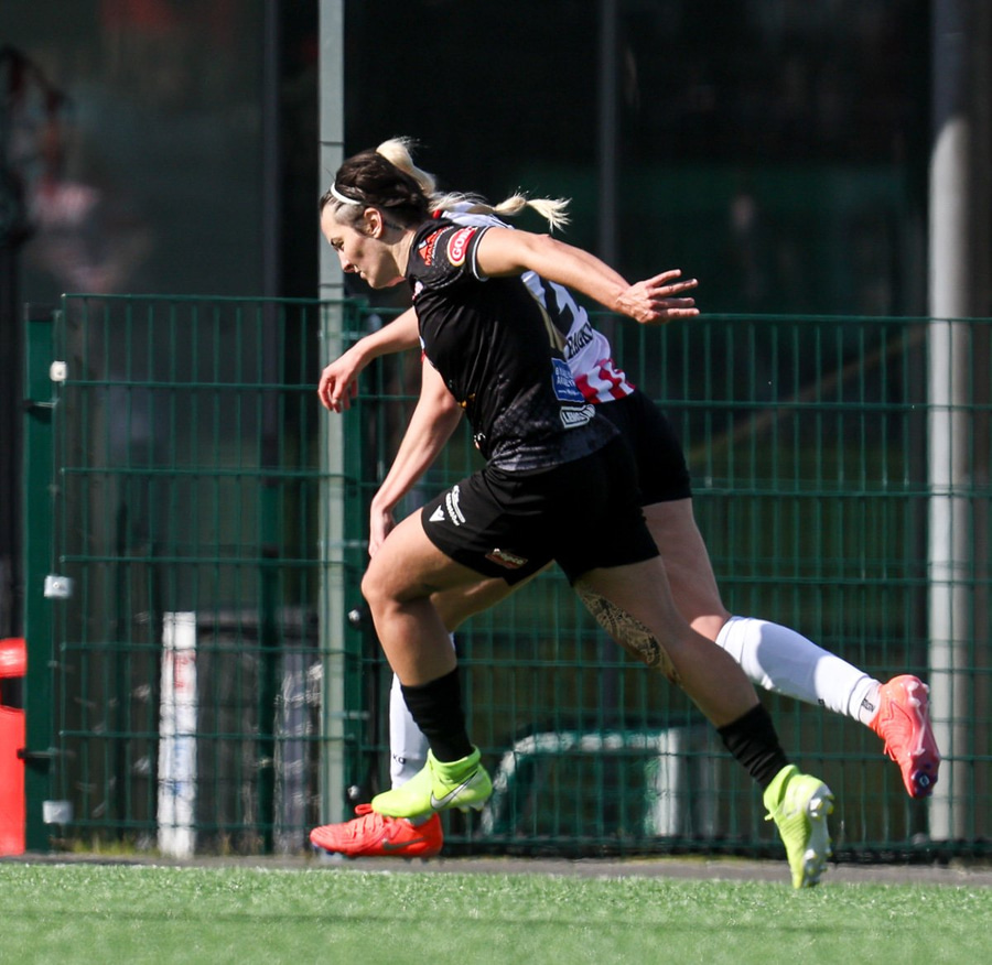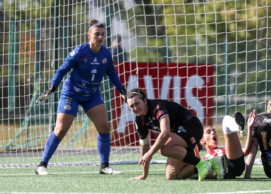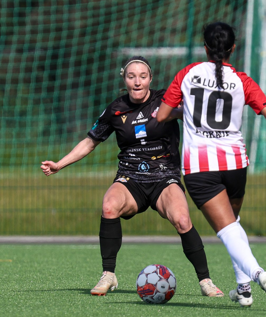 Brynja Rán Knudsen komin ein gegn Shelby Money út við endalínu eftir undirbúning Sigríðar Theódóru en Shelby sem varði frá henni.