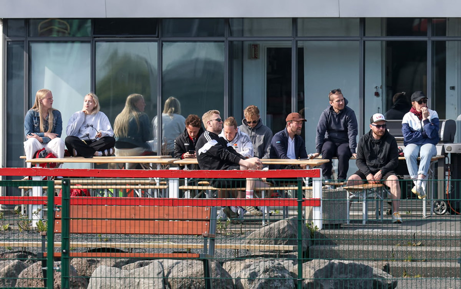 Leikurinn stoppaði í smástund þegar þrír leikmenn þurftu að reima á sama tíma. Spurning að læra tvöfalda hnútinn.