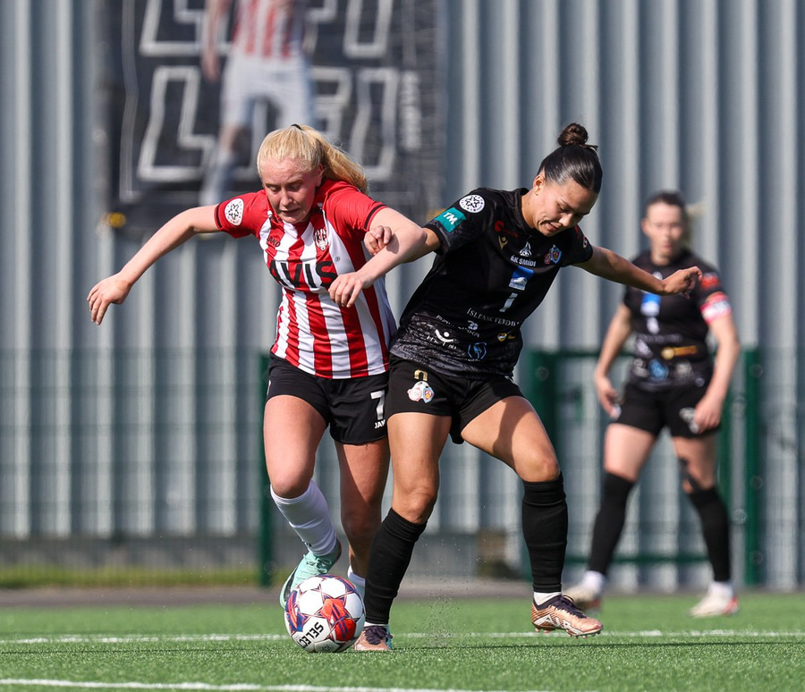 Leah Maryann Pais strax aftur komin í færi, lét vaða á vítateigslínunni en boltinn yfir markið.