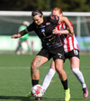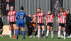 Fyrir að tefja og hlaupa með boltann þegar Þróttur átti innkast.