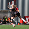 Álfhildur Rósa Kjartansdóttir skallar yfir mark Þórs/KA eftir fyrirgjöf Caroline Murray.