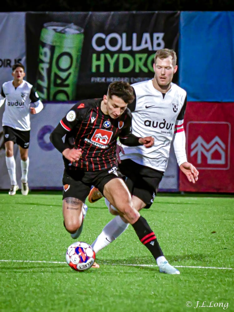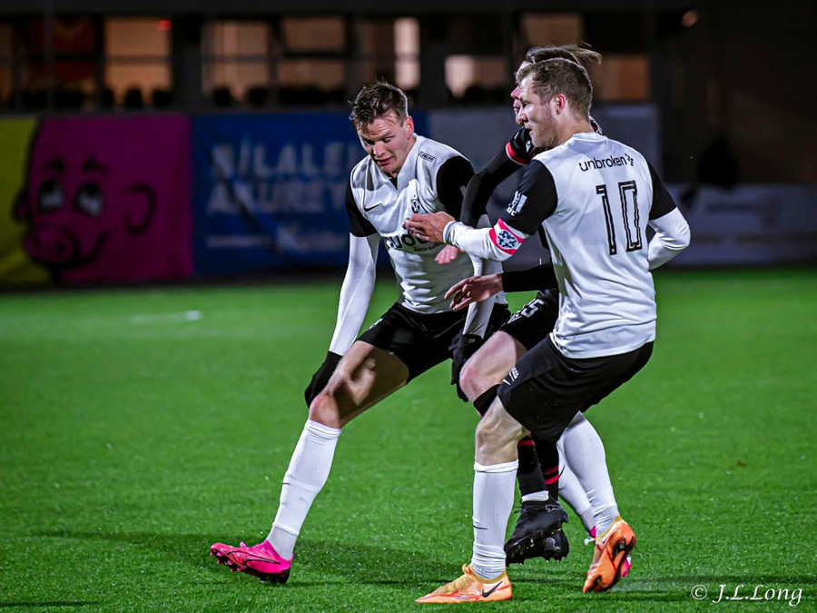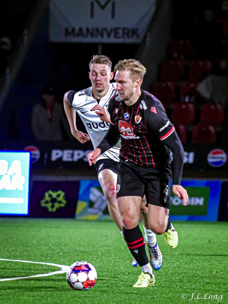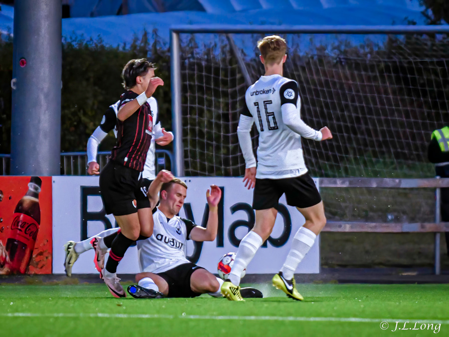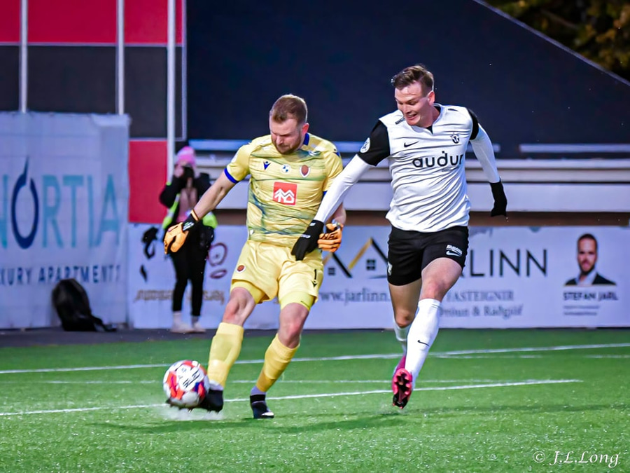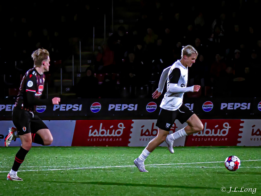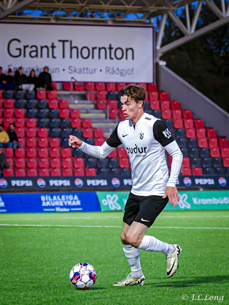 Davíð Atla kemur boltanum á Karl Friðleif sem er alveg út við endalínu. Karl kemur boltanum yfir allan pakkann og á fjærstöngina þar sem Helgi Guðjóns er mættur og skallar boltann í netið.