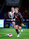 Fer harkalega í Helga Guðjóns rétt við vítateigslínuna.