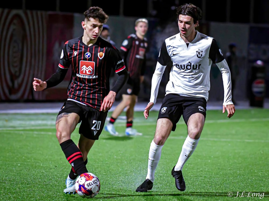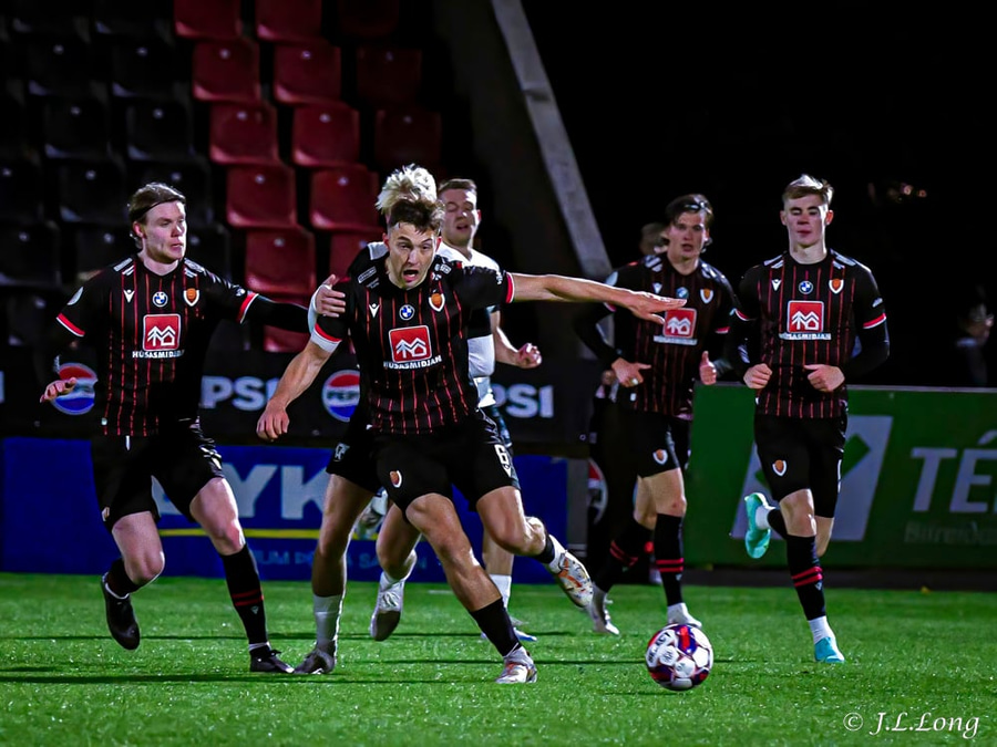 Ingimar Stöle með góða fyrirgjöf á fjærstöngina þar sem Kristján Flóki er mættur og skallar boltann í varnarmann og aftur fyrir.