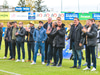 Íslandsmeistaralið FH árið 2004 gengur til vallar til að fagna 20 ára afmæli fyrsta Íslandsmeistaratitli FH en þetta lið fékk gullmerki FH á dögunum.