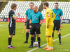 Dæmt brot á Anton Ara í markinu sem liggur niðri sárþjáður en er að mér sýnist að ná að hrista þetta af sér.