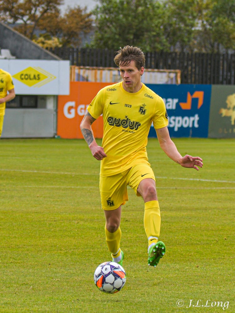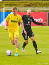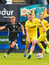Brýtur á Arnóri Gauta úti á miðjum velli og fær verðskuldað gult spjald.