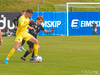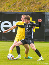 Daði kemur með slaka sendingu upp völlinn sem Logi missir af og Arnór Gauti er fljótur að vinna boltann og koma honum til hliðar á Aron Bjarna. Aron keyrir í átt að teignum og kemur með fínt skot sem Daði er hins vegar í engum vandræðum með.