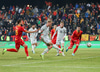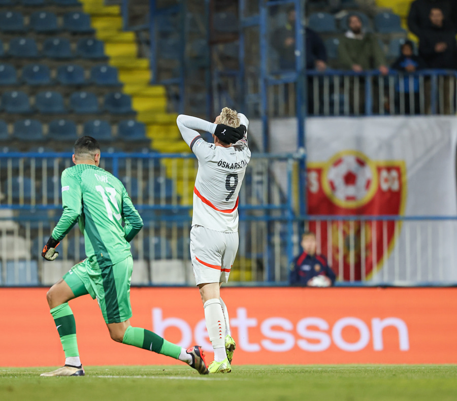 Stefan Mugosa í hörkufæri eftir tilviljanakennda sókn Svartfellinga. Nær ekki að stýra skotinu á markið og setur boltann yfir.