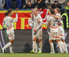 Hið stórkostlega Þjóðadeildarstef ómar. Næst á dagskrá eru þjóðsöngvarnir. Ó, guð vors lands! Ó, lands vors guð!