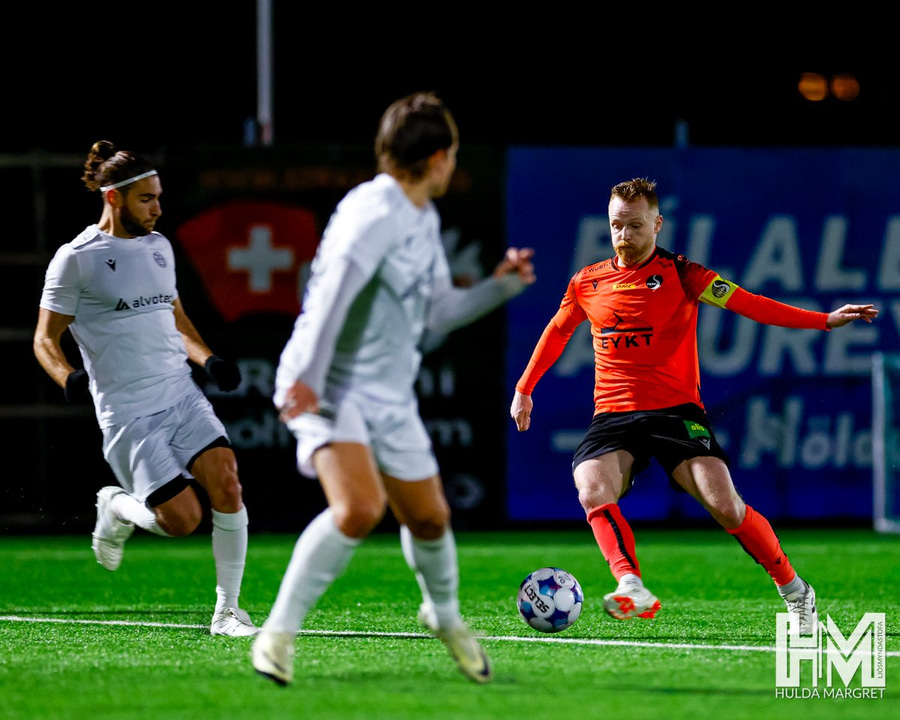 KR-ingar halda áfram að reyna þessi skot fyrir utan teiginn, nú er það Vicente Valor sem á heiðurinn að skjóta hátt yfir markið.