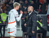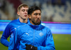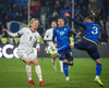 Milot Rashica fær boltann inn fyrir og á skot sem Hákon Rafn ver með andltinu.